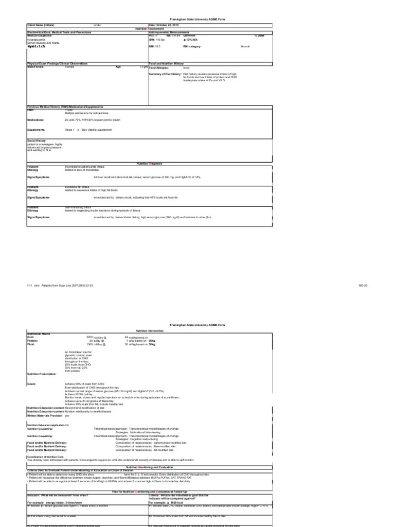 3 adime form for diabete case 1 Blood Sugar Nutrition