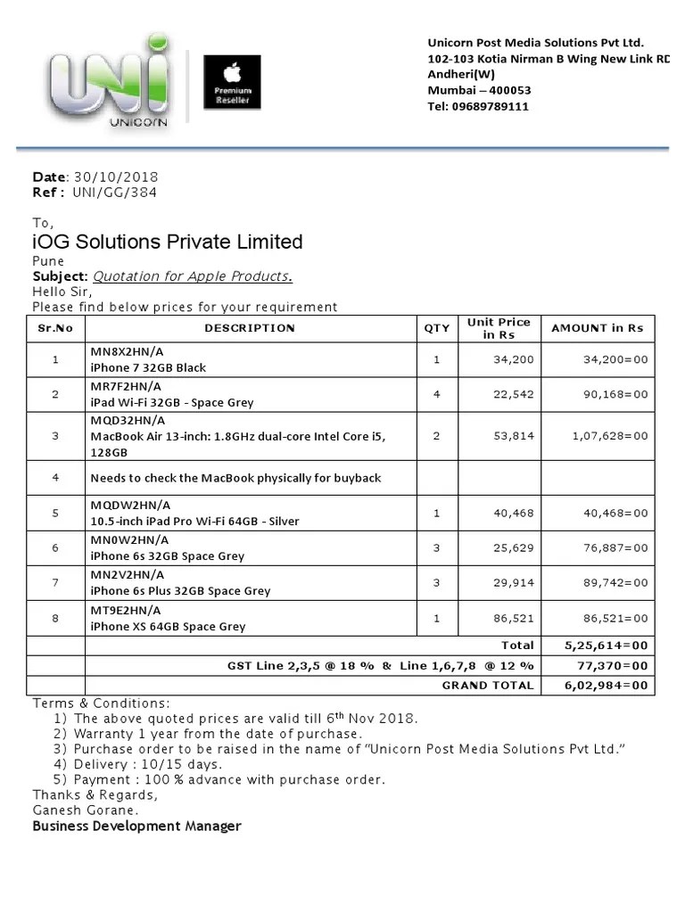 Apple Invoice Apple Inc. Apple Inc. Hardware