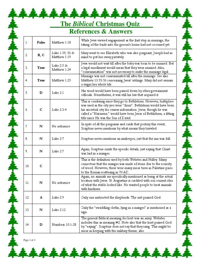 The Biblical Christmas Quiz References and Answers Gospel Of Matthew