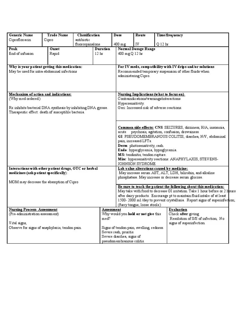 Medication heather bogonis student name_ ciprofloxacin 12 medication_. Done during simulation clinicals medication template medication. Children less than 18 years of age have a higher chance of getting bone, joint, or tendon (musculoskeletal) problems such as pain or swelling while taking cipro. Web avoid or use alternate drug.