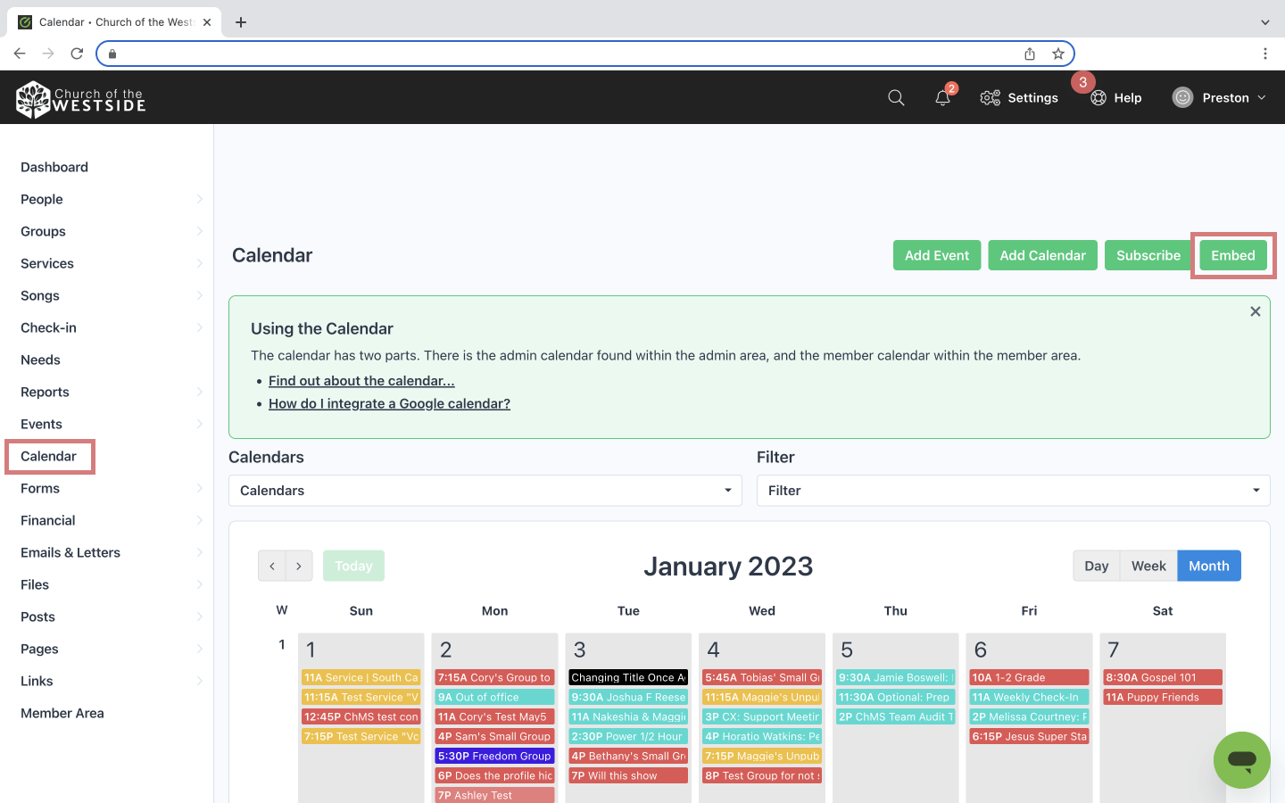 How to Embed the Events Calendar on my Website and Custom Church App