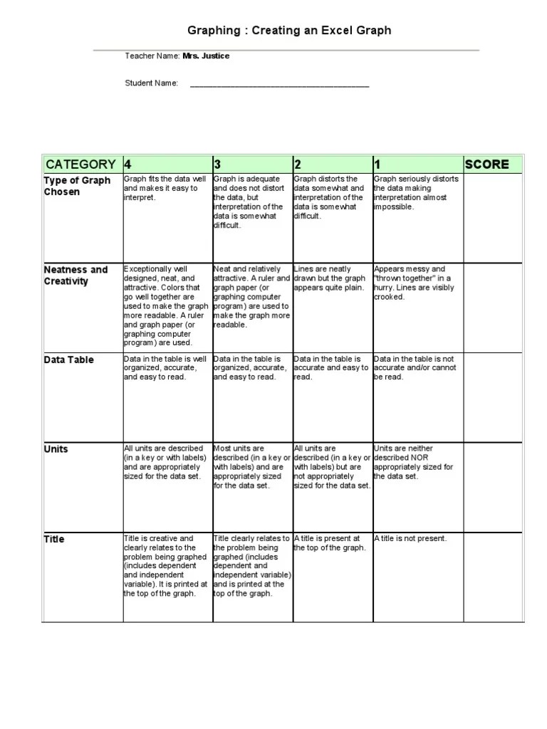 Rubric For Excel Graph PDF Areas Of Computer Science Computing