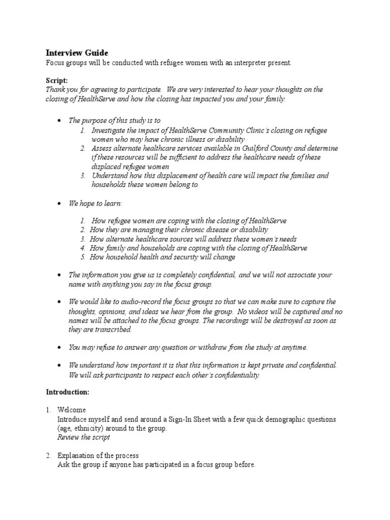 Web sample focus group “script” or discussion guide for plwh who are out of care or recently entered care focus group note: Web below is a general guide for leading our focus groups. This toolkit contains two sections: The moderator typically writes the guide, which contains topics, questions, and activities for an interview.