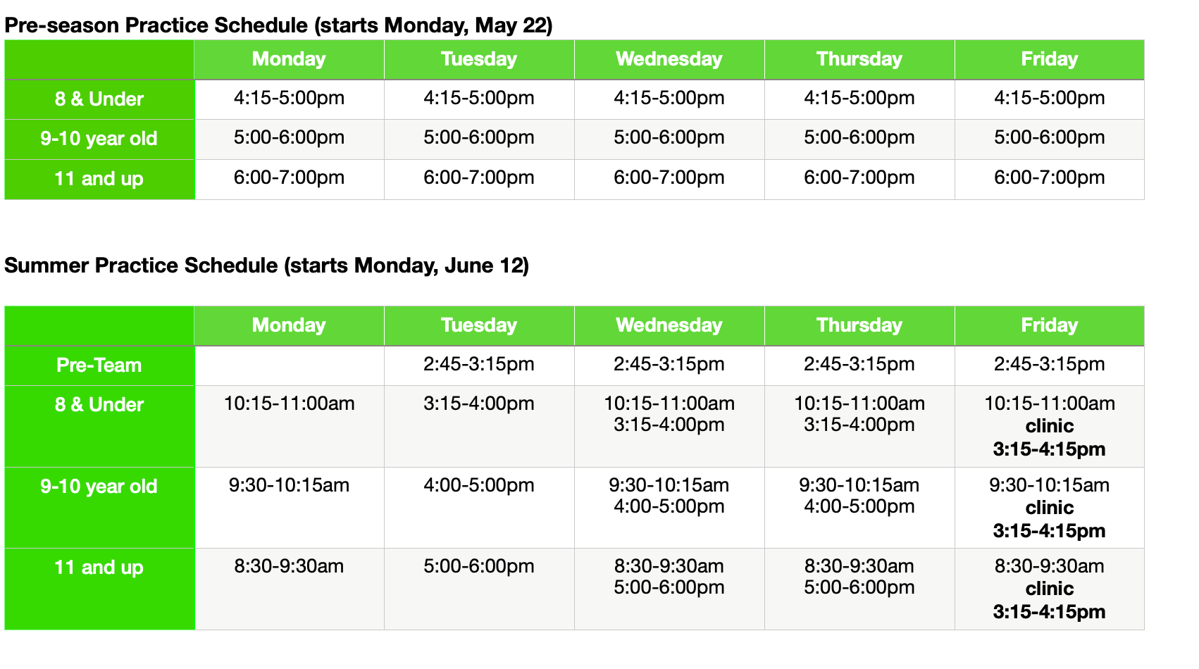 Practice Schedule Avalon Gators Swim Team