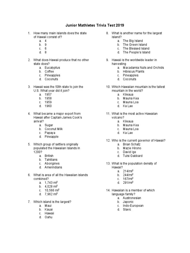 Hawaii Trivia Questions And Answers Printable Printable Word Searches