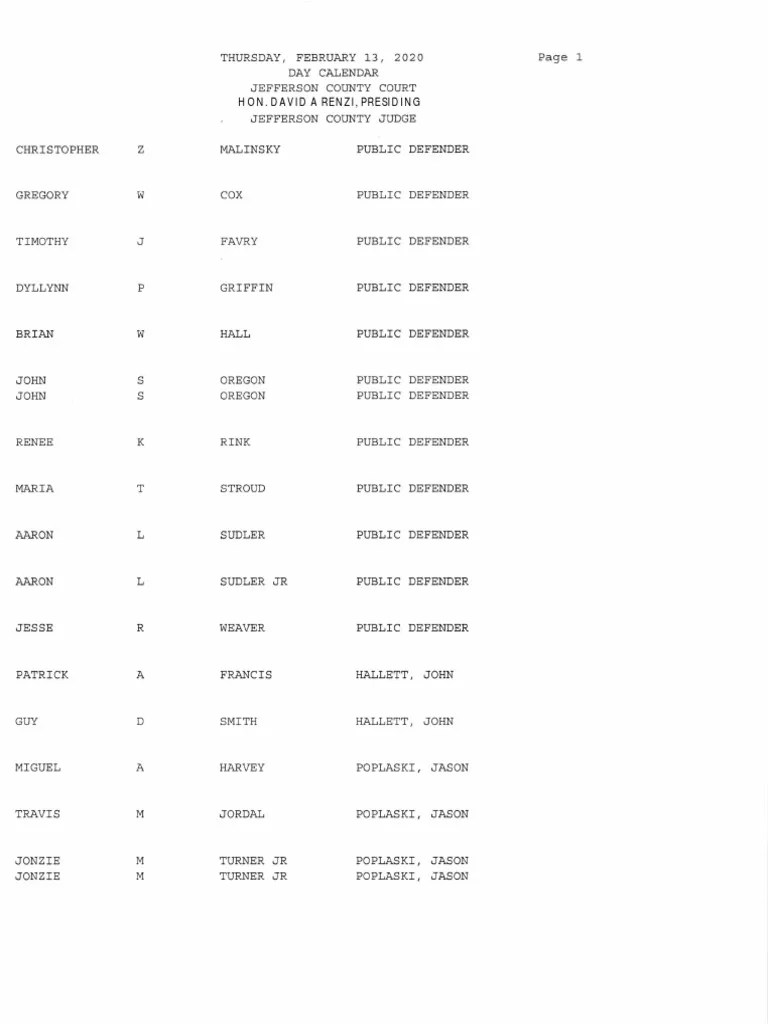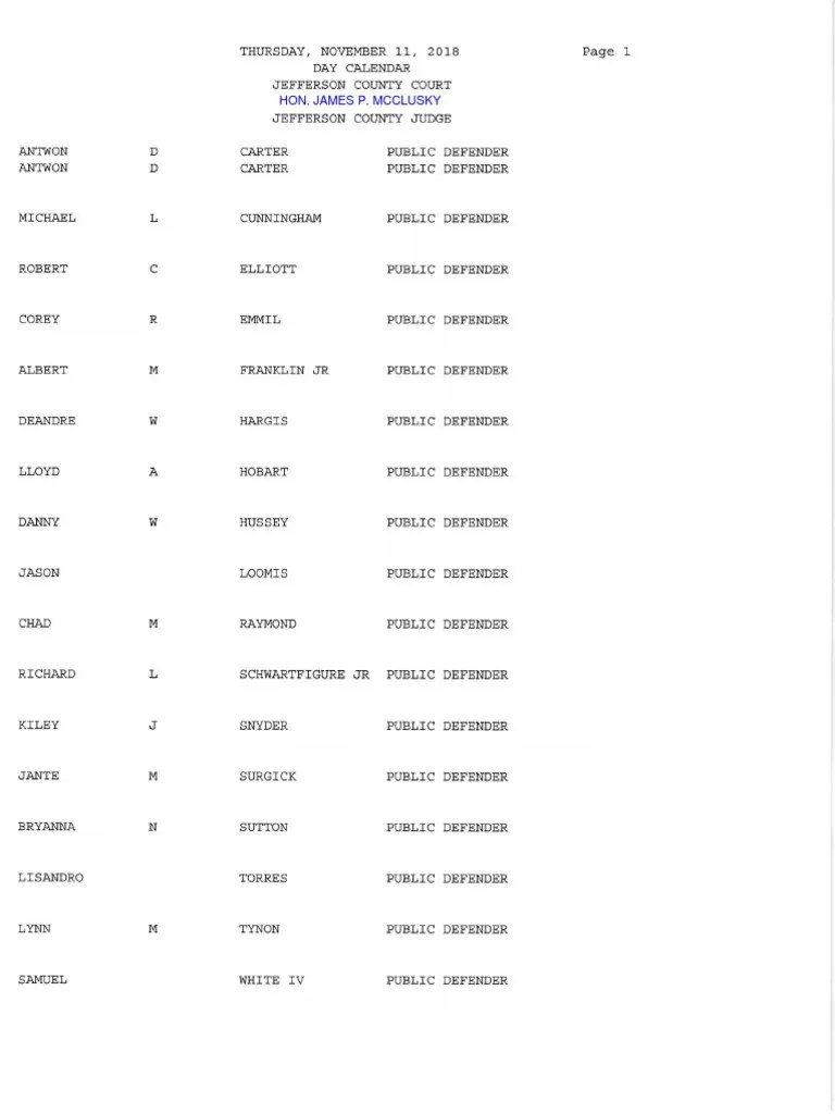 Jefferson County Court Calendar Nov. 1, 2018 PDF