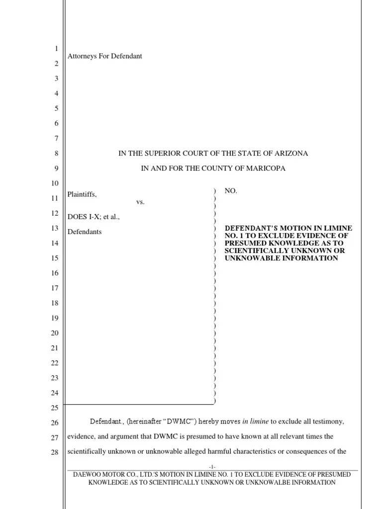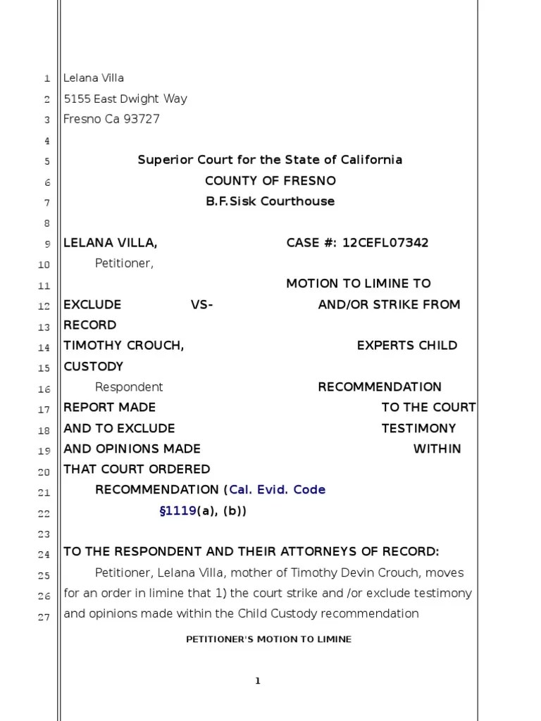 Motion in Limine to Exclude All Evidence and Judicial Notice Pleading