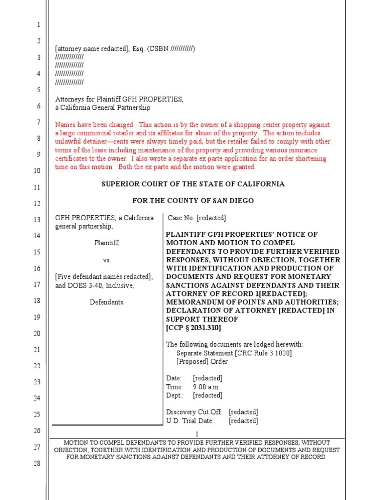 A motion to compel is typically one of the first motions an attorney practicing civil litigation may argue. Web how to draft a successful motion to compel. Comes now plaintiff, by counsel, and files this, his motion to compel. Web a sample motion or notice of motion to compel discovery under federal rule of civil procedure (frcp) 37 (a). Downey.