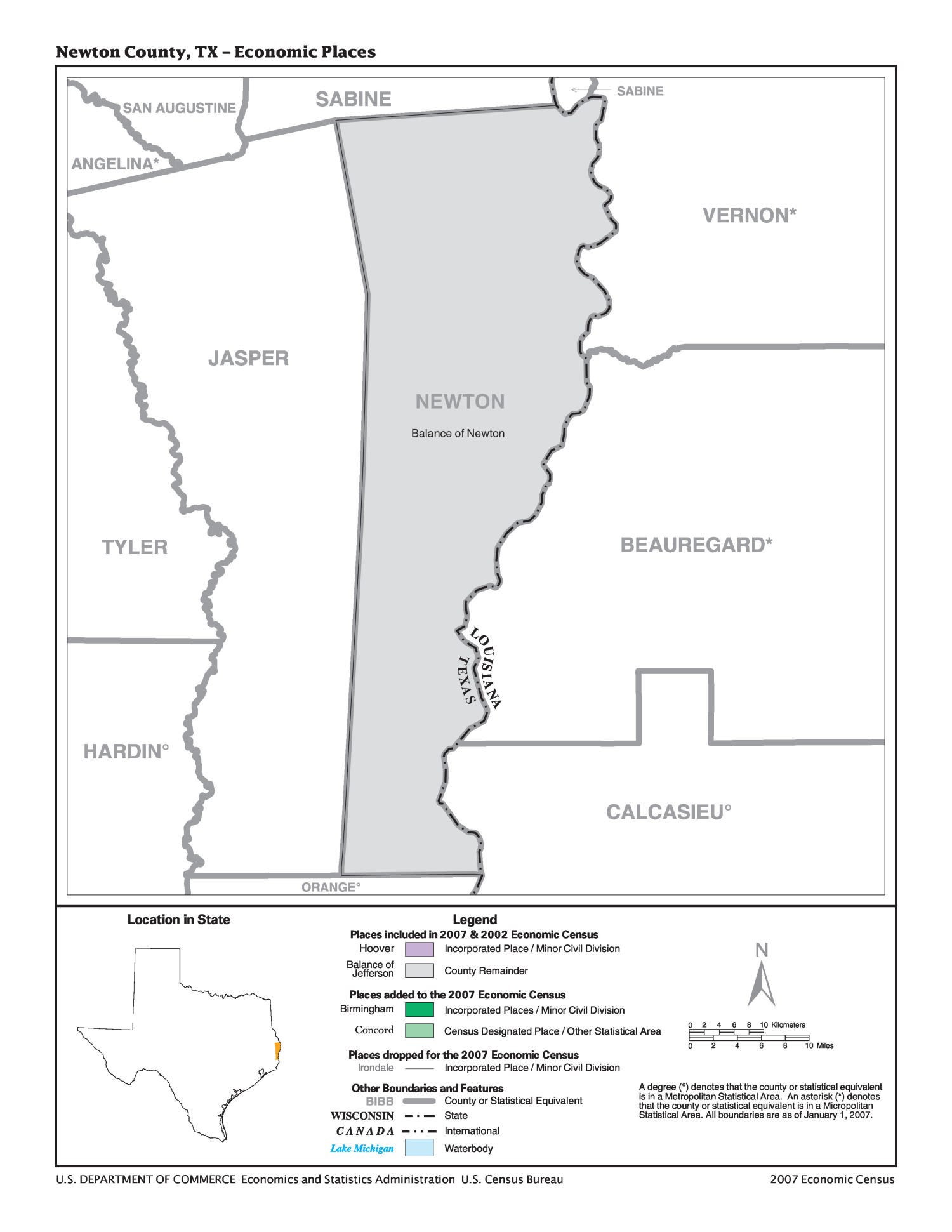 2007 Economic Census Map Newton County, Texas Economic Places The