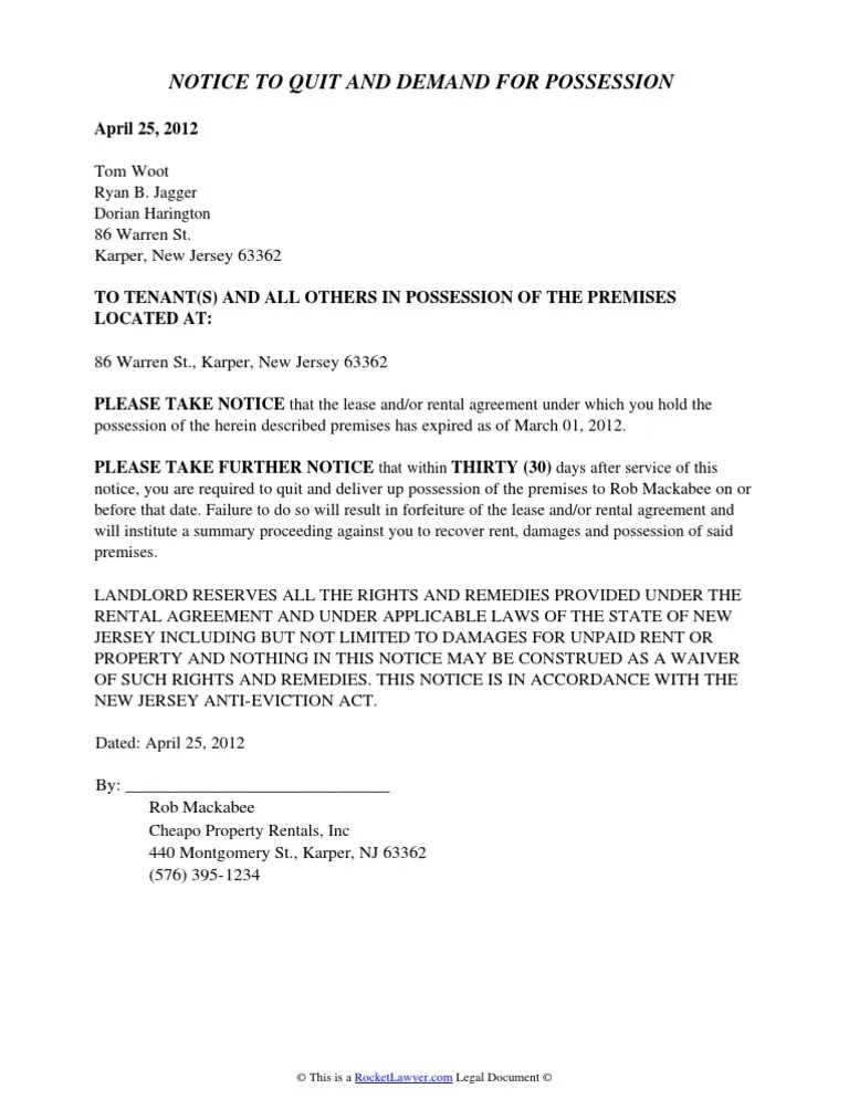 Fill now click to fill, edit and sign this form now! Pdf | word a new jersey 30 day notice to vacate is an official lease termination letter written to. The specific details to add. Web the landlord must attach copies of the notices to the complaint before filing with the court.