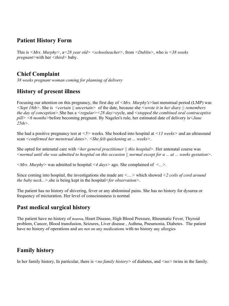 We are not affiliated with any. Much of the history is covered here and documented in notes that the patient is advised to carry at all times. Get your fillable template and complete it online using the instructions provided. Obstetric history taking opening the consultation 1 wash your hands and don ppe if appropriate 2 introduce yourself to the patient.