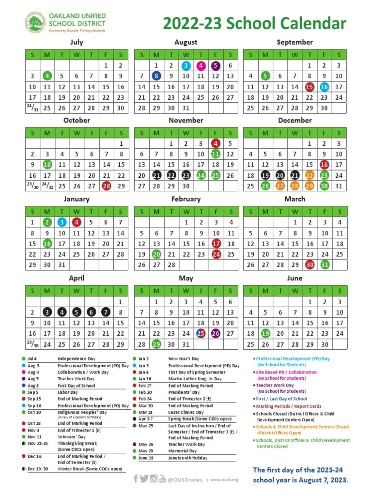 Oakland Unified School District Calendar 2022 2023