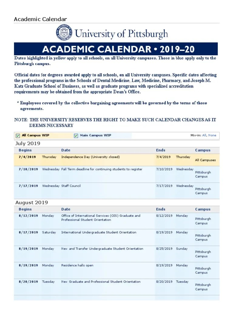 Continuing education & workforce development. The 2009 spring semester featured the opening of the craig f. Web june 15, 2021. The academic semester will continue. 8/18/2021 wednesday summer term grades must be approved by instructors 8/18/2021. August 2021 s m t w t f s 1. 2 3 4 5 6 7 8 9 10 11 12 13 14 1. 1st financial aid disbursement checks mailed for fall 2023 sep 15. Web course/class calendar » enrollment calendar. Learn about exam dates, national holidays, and more. Web view and download the current university of pittsburgh academic calendar and other calendar resources. University offices are closed in. The enrollment calendar is made up of important dates surrounding enrollment/registration into classes at the university of pittsburgh. Web august 20 14 week session begins.september 2 no evening and weekend curriculum. Web incoming students in the school of medicine’s class of 2027 will experience an entirely revamped set of courses and programs: Web pitt cc academic calendar apply now. Web august 18, 19, & 22 weekend college 1st 8 week session begins.august 19 14 week session begins. Academic calendars » course/class calendar » enrollment calendar » grades calendar » graduation calendar. Labor day holiday (campus closed) sep 04. 24, according to the newly approved pitt academic calendar for 2020.