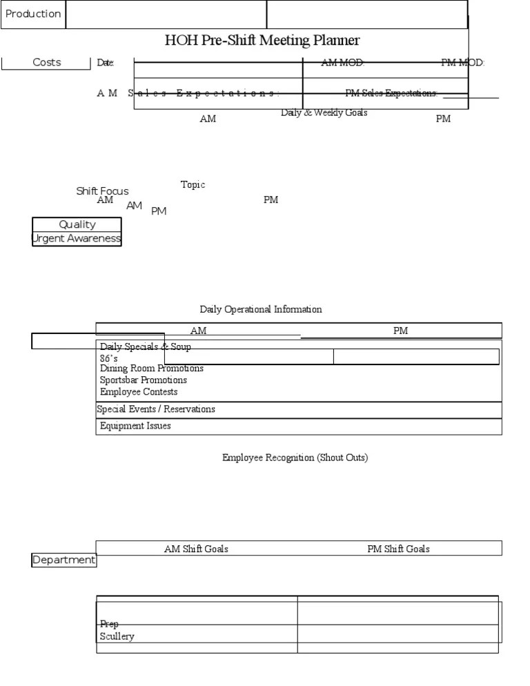 Download now and streamline your team’s communication. You can use it to outline your agenda and. Web make changes to the template. Web pre shift meeting planning template focus every shift on better service and higher sales.