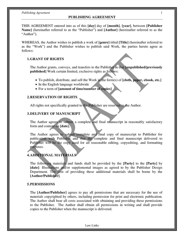 The right to publish, sell, and profit from the listed works in all languages and formats in existence. Web book publishing contract template grant of rights. The model trade book contract contains samples of the clauses or provisions authors are likely to encounter in a publishing contract… It can be customized as per the author’s and the publisher’s requirements, without.