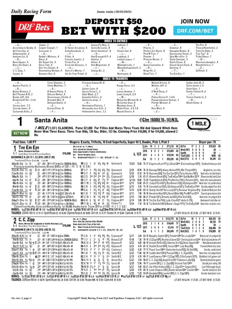 Santa Anita Daily Racing Form