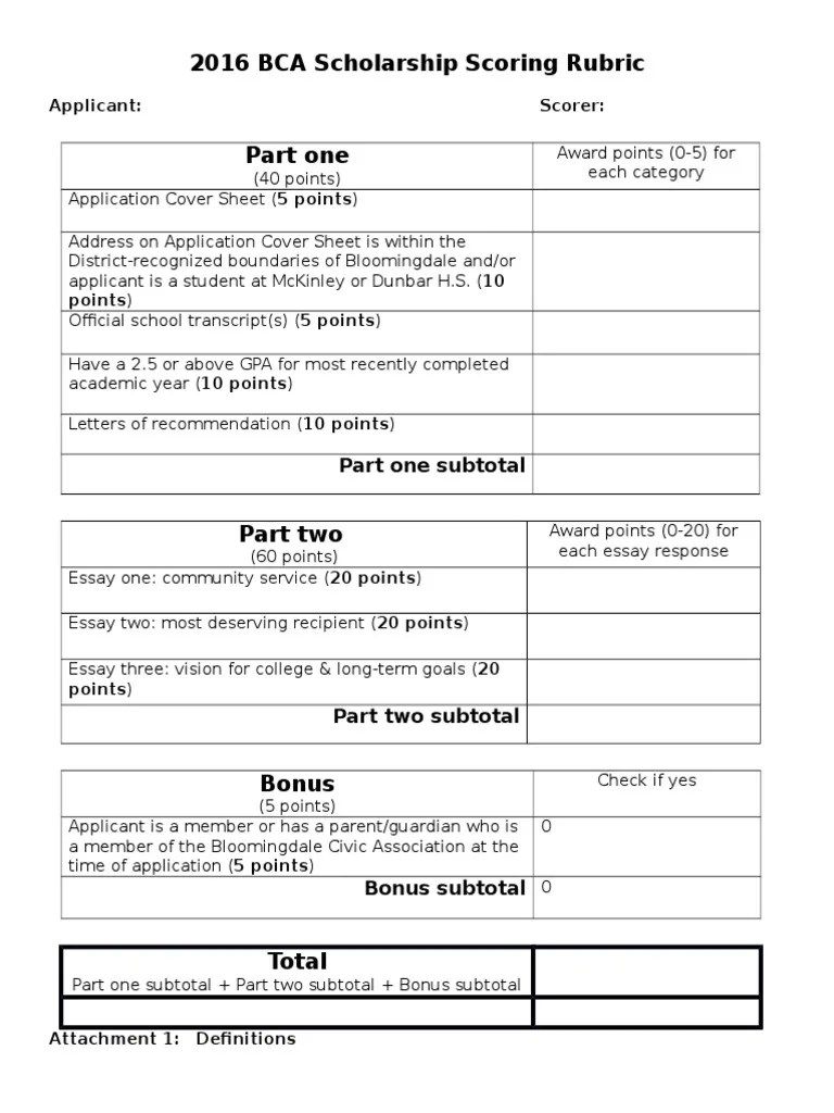Web how will your scholarship be scored? Should each application component receive a distinct score? Web sample scoring rubric for scholarship application. What would an outstanding application include? When instructors give out an assignment, many will provide you with a detailed grading rubric to further your understanding of how it will be.