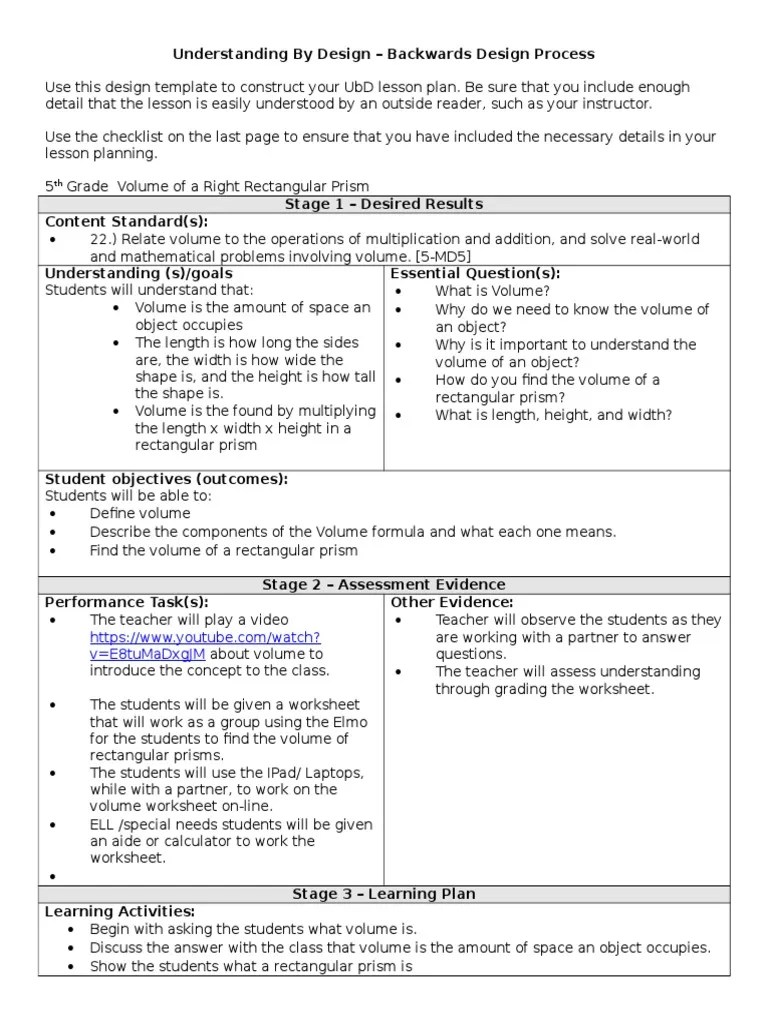 Title UbD Unit Plan Subject/Course… Lesson plan examples, Lesson