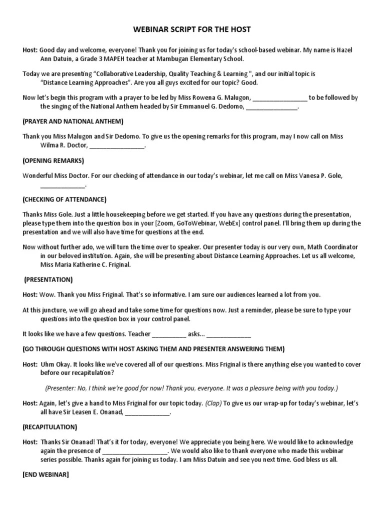 Webinar Script For The Host PDF