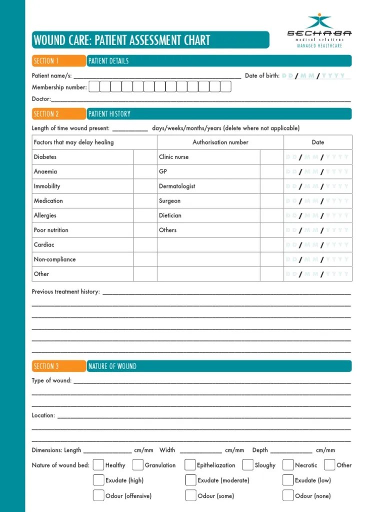 Wound Care Patient Assessment Chart
